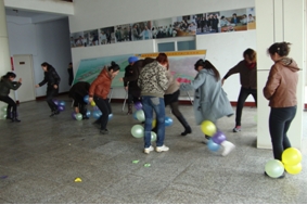 公司女職工踴躍報名,積極參與?;顒蝇F(xiàn)場內(nèi)容豐富,形式多樣,有吹氣球、踩氣球、袋鼠跳、顛兵乓球、夾彈珠、滾輪胎、搶座位、運(yùn)球50米賽共8個游戲。女員工們不甘示弱,各顯身手,各個表現(xiàn)神勇,現(xiàn)場歡笑聲、加油聲此起彼伏。